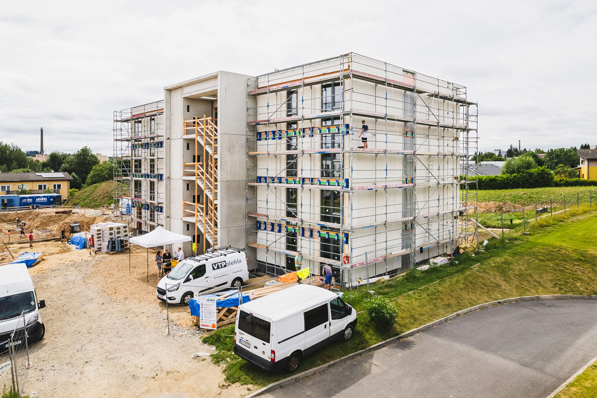 Projekt dvoch bytových domov s cenovo dostupnými nájomnými bytmi je výsledkom silného partnerstva medzi spoločnosťami Nema Dřevostavby s.r.o. a Dostupné bydlení České spořitelny a predstavuje reálne riešenie nedostatku bytov v meste Žďár nad Sázavou a potenciálne aj v celej Českej republike. Približne 1 800 m2 sadrovláknitých dosiek fermacell® je použitých na stenové konštrukcie dvoch bytových domov z CLT panelov a stĺpových konštrukcií.