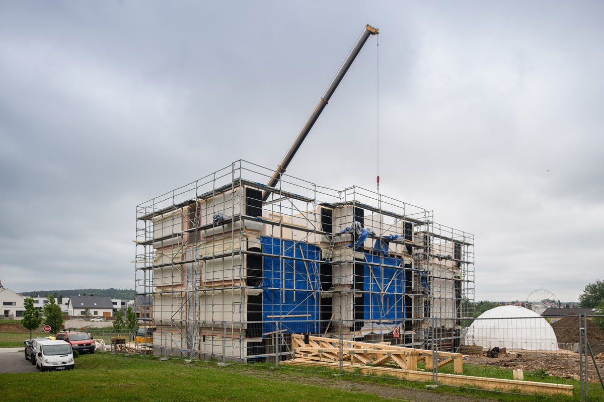 2 a trvalo tak prispieva k ochrane klímy. Vďaka vysokému stupňu prefabrikácie, kde sa prvky vyrábajú v továrni za ideálnych podmienok bez ohľadu na počasie, je doba výstavby krátka. Otvory pre okná a dvere sú jednoducho vyrezané. Dobré difúzne vlastnosti vytvárajú príjemnú klímu v miestnosti.