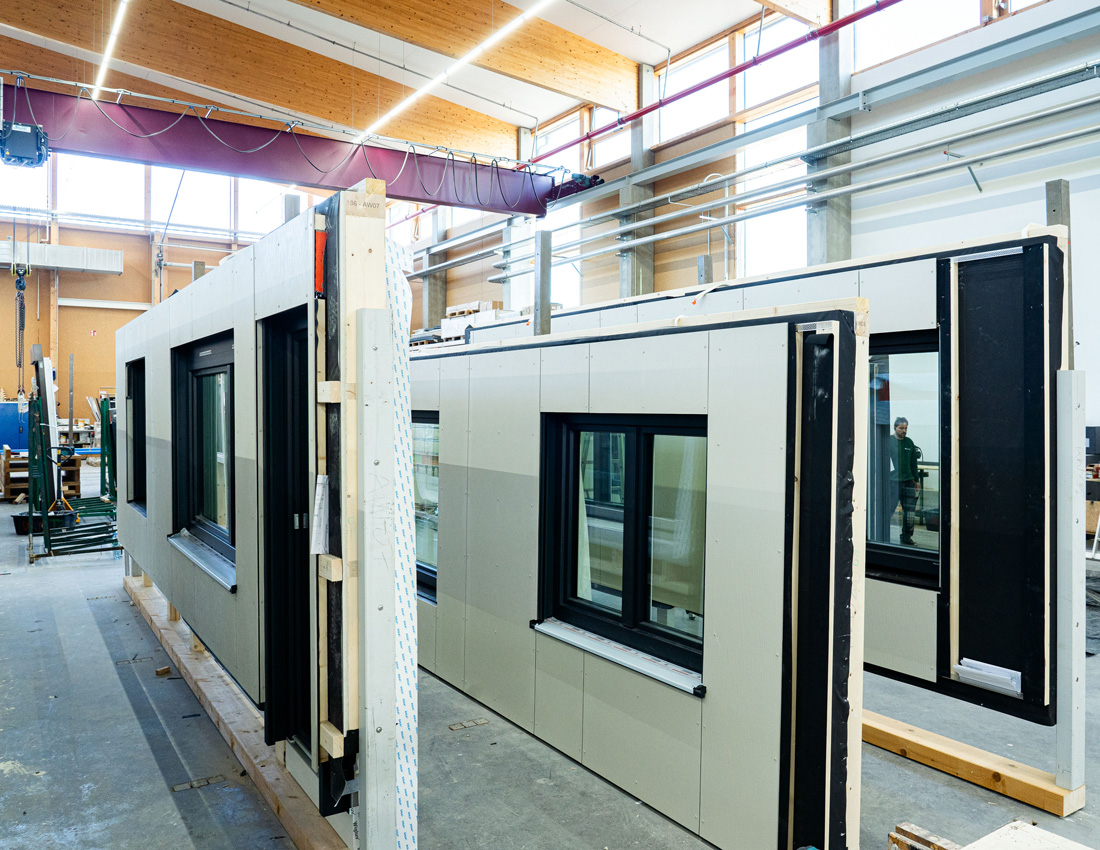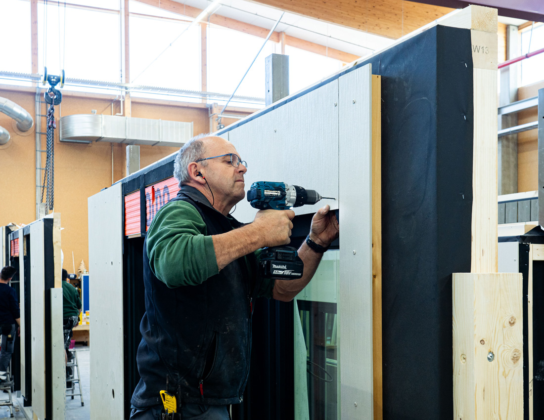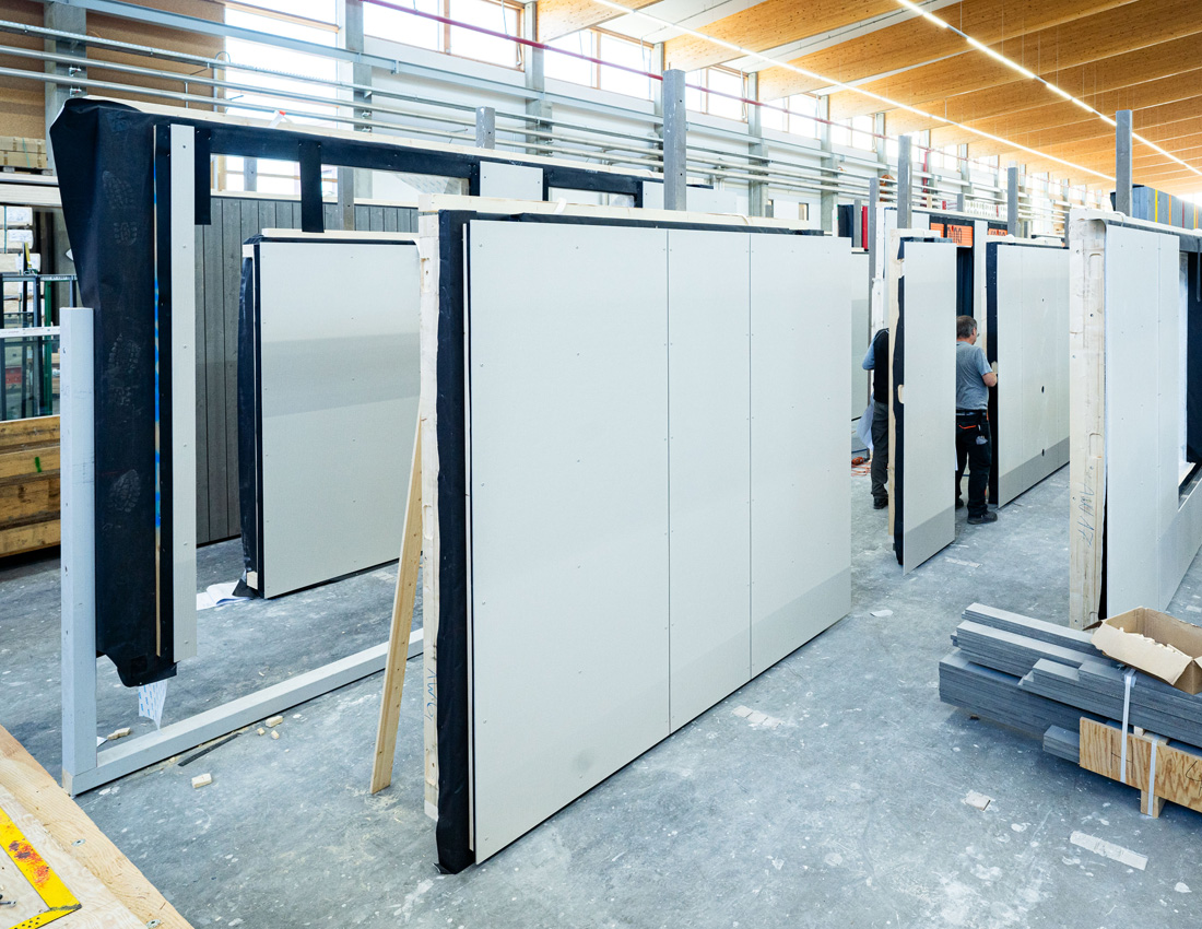Stále viac drevostavbárov stavia na sériové stavebné postupy. Stenové prvky sú kompletne montované vo výrobnom závode, vrátane podkonštrukcie, tepelnej izolácie a obloženia vnútorných stien a fasády, a potom inštalované priamo na stavenisku. Tento udržateľný a ekonomický spôsob výstavby skracuje dobu výstavby, znižuje náklady a zaručuje vysokú a konzistentnú kvalitu prevedenia. Zatiaľ čo sú vnútorné strany panelov často opláštené sadrovláknitými a cementovláknitými doskami fermacell