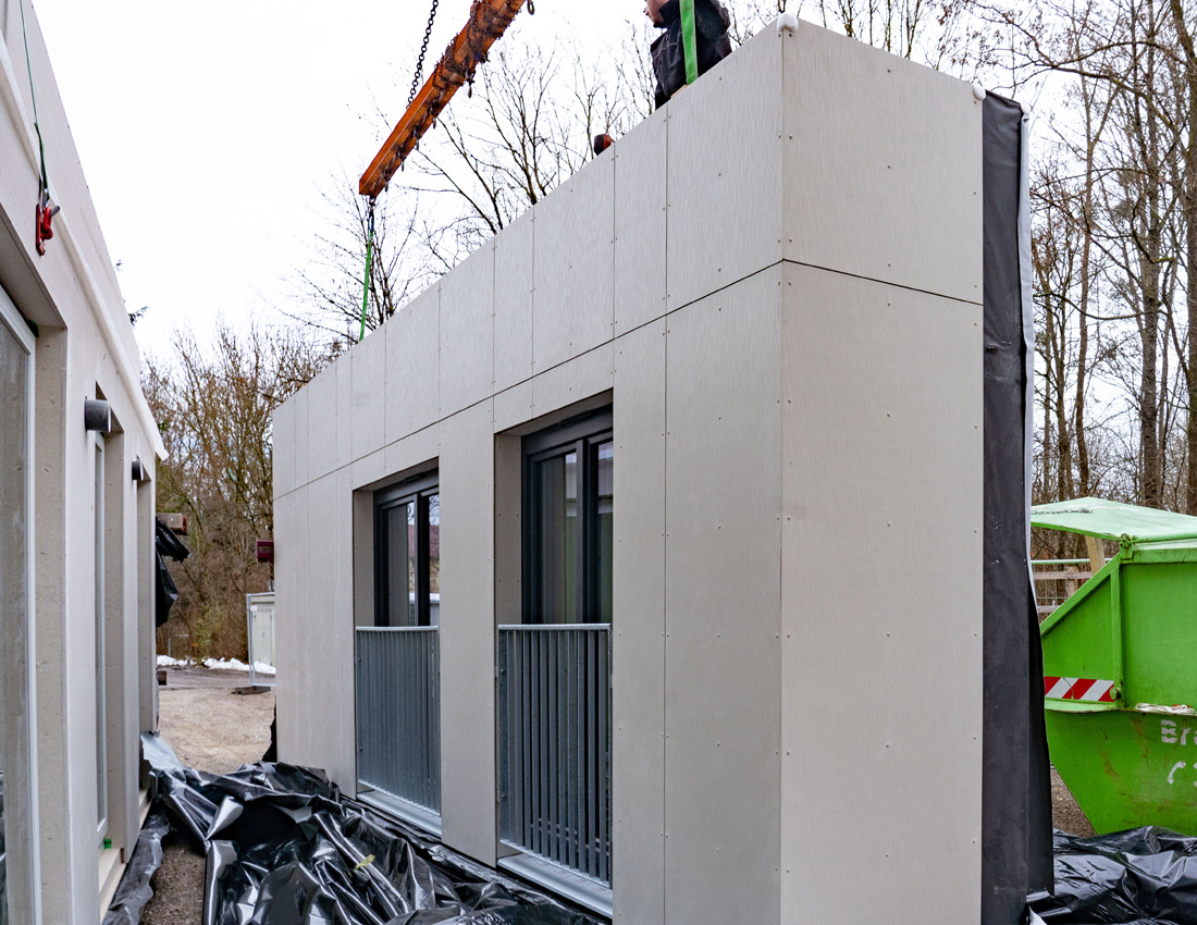 Prefabrikácia v drevostavbách nadobúda na význame. Požaduje sa rýchle spracovanie, dizajnová rozmanitosť, šetrnosť k životnému prostrediu a zodpovedajúce technické vlastnosti. S veľkoformátovými fasádnymi doskami Hardie® Panel a Hardie® Architectural Panel z vláknocementu ponúka James Hardie výkonné fasádne riešenie, ktoré je možné perfektne integrovať do moderných výrobných procesov súčasných drevostavieb.