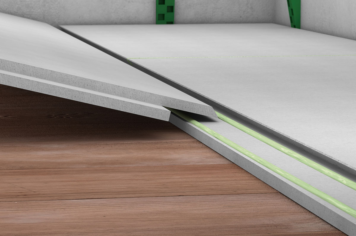 tvoria dve dosky fermacell® s hrúbkou 10 mm alebo 12,5 mm vo formáte 150 x 50 cm, ktoré sú zlepené z výroby. Dosky sú voči sebe presadené tak, aby vytvorili 5 cm širokú obvodovú polodrážku, vďaka ktorej je spracovanie podlahových prvkov ešte rýchlejšie. V sortimente spoločnosti James Hardie Europe taktiež nájdete podlahové prvky, ktoré majú už z výroby nakašírovanú vrstvu drevovláknitej dosky, minerálnej vlny alebo EPS – vďaka nim je možné docieliť vynikajúcu akustickú alebo tepelnú izoláciu v jednom kroku.