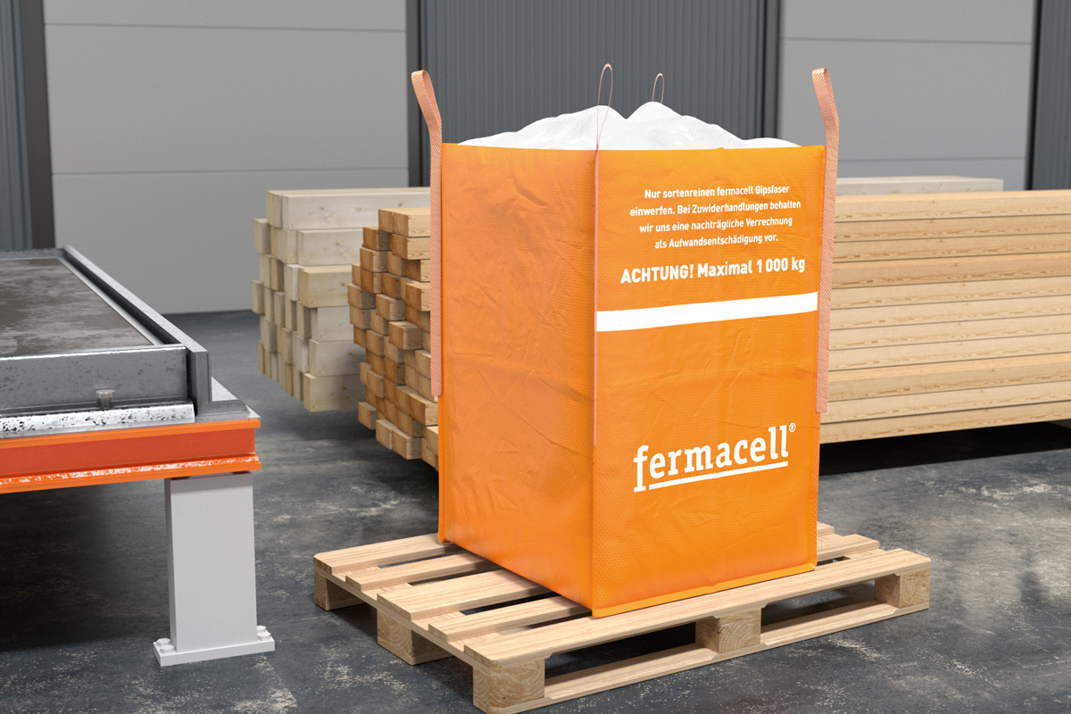 V systéme spätného odberu pre nezmiešané sadrovláknité odrezky zo stavebných prvkov fermacell® zohrávajú dôležitú úlohu veľkoobjemové vrecia na stavebný odpad Big Bags.